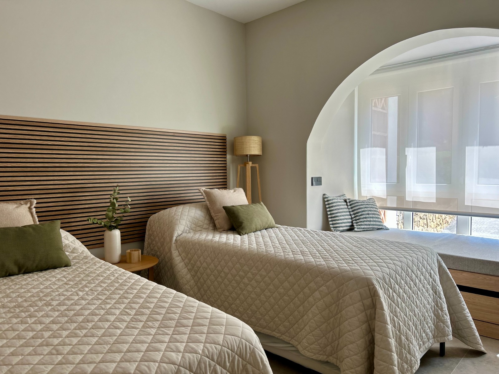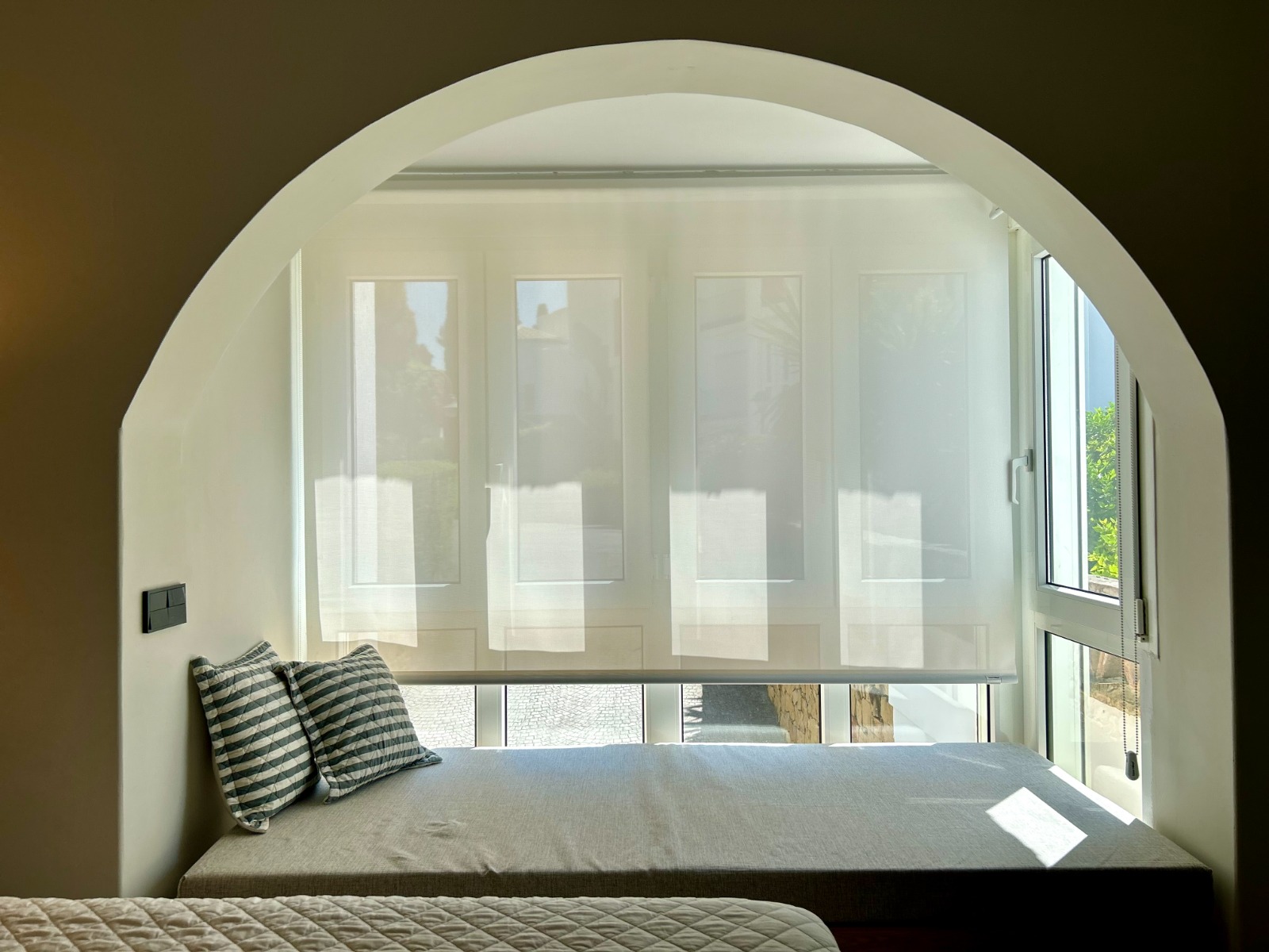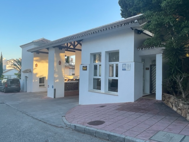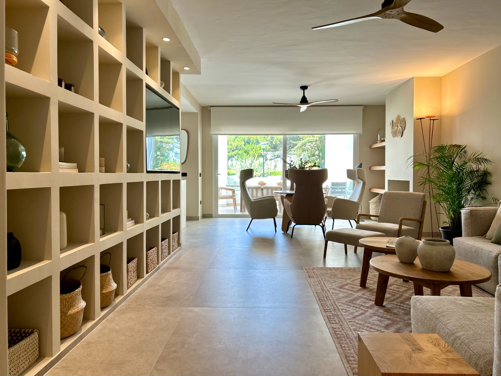 From the dining area, large glass doors lead directly to a private terrace and garden, perfect for enjoying Marbella’s year-round sunshine. The property also boasts partial sea views, adding a peaceful Mediterranean atmosphere to the outdoor living space.