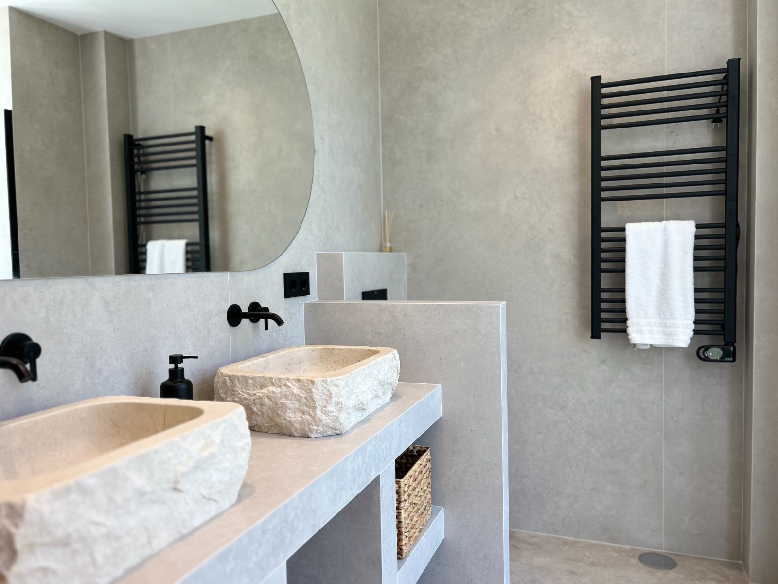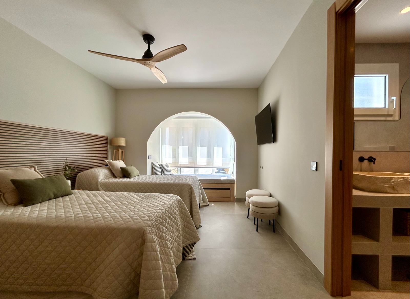 The property features three en-suite bedrooms, each with its own private bathroom, ensuring maximum comfort and privacy. The spacious open-plan living and dining area seamlessly connects to a modern, fully equipped kitchen, creating a bright and elegant space ideal for both relaxing and entertaining.