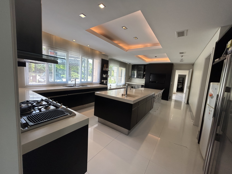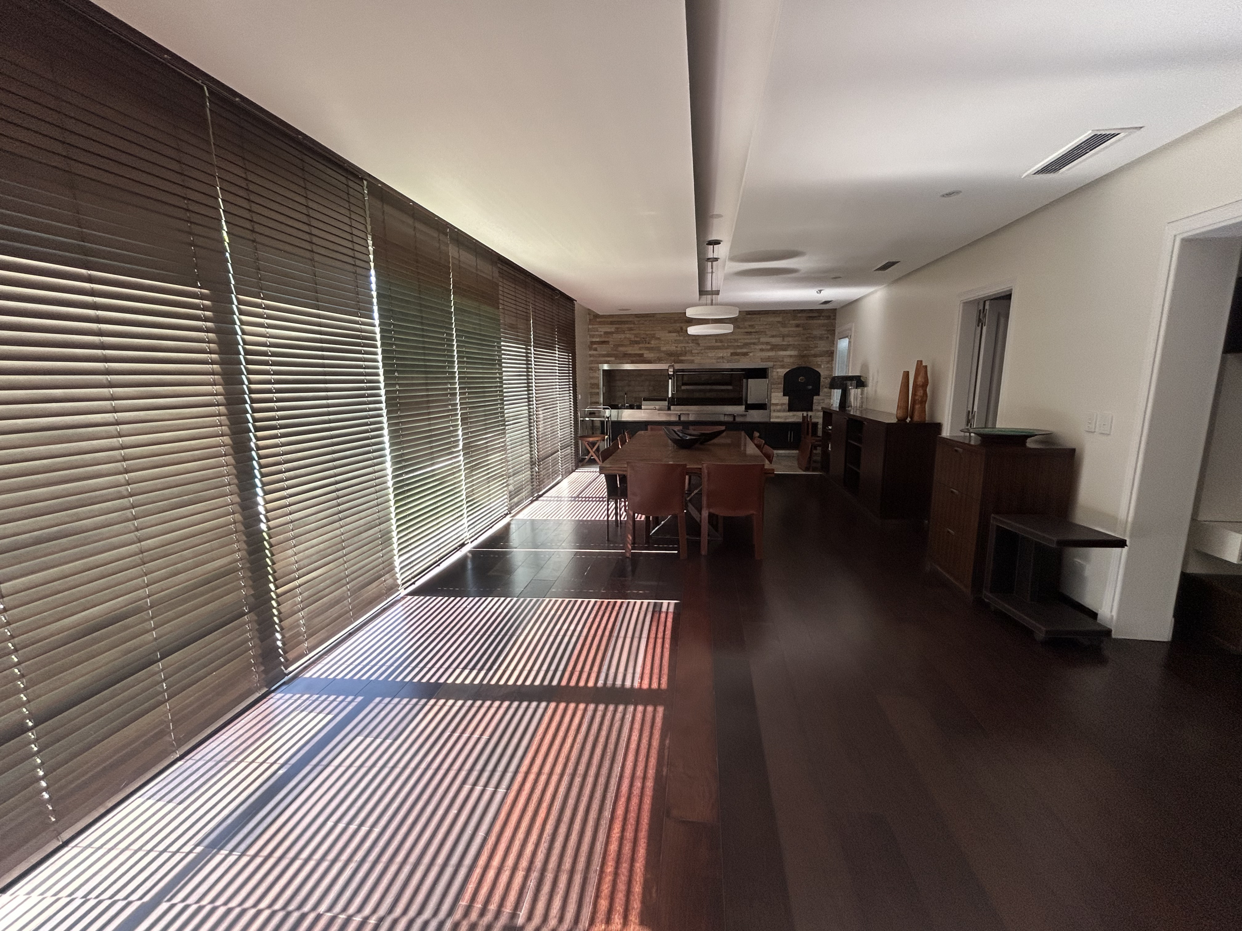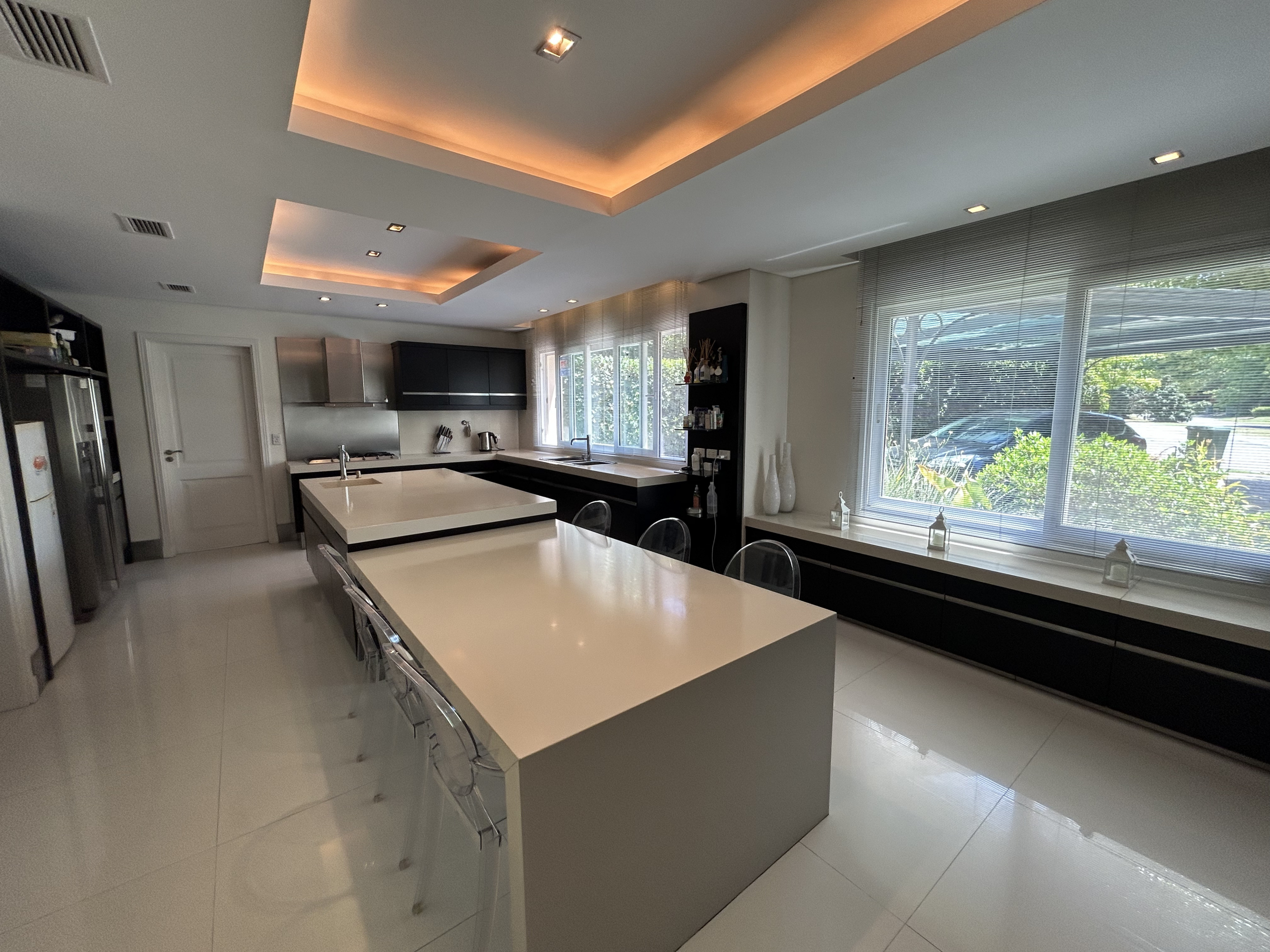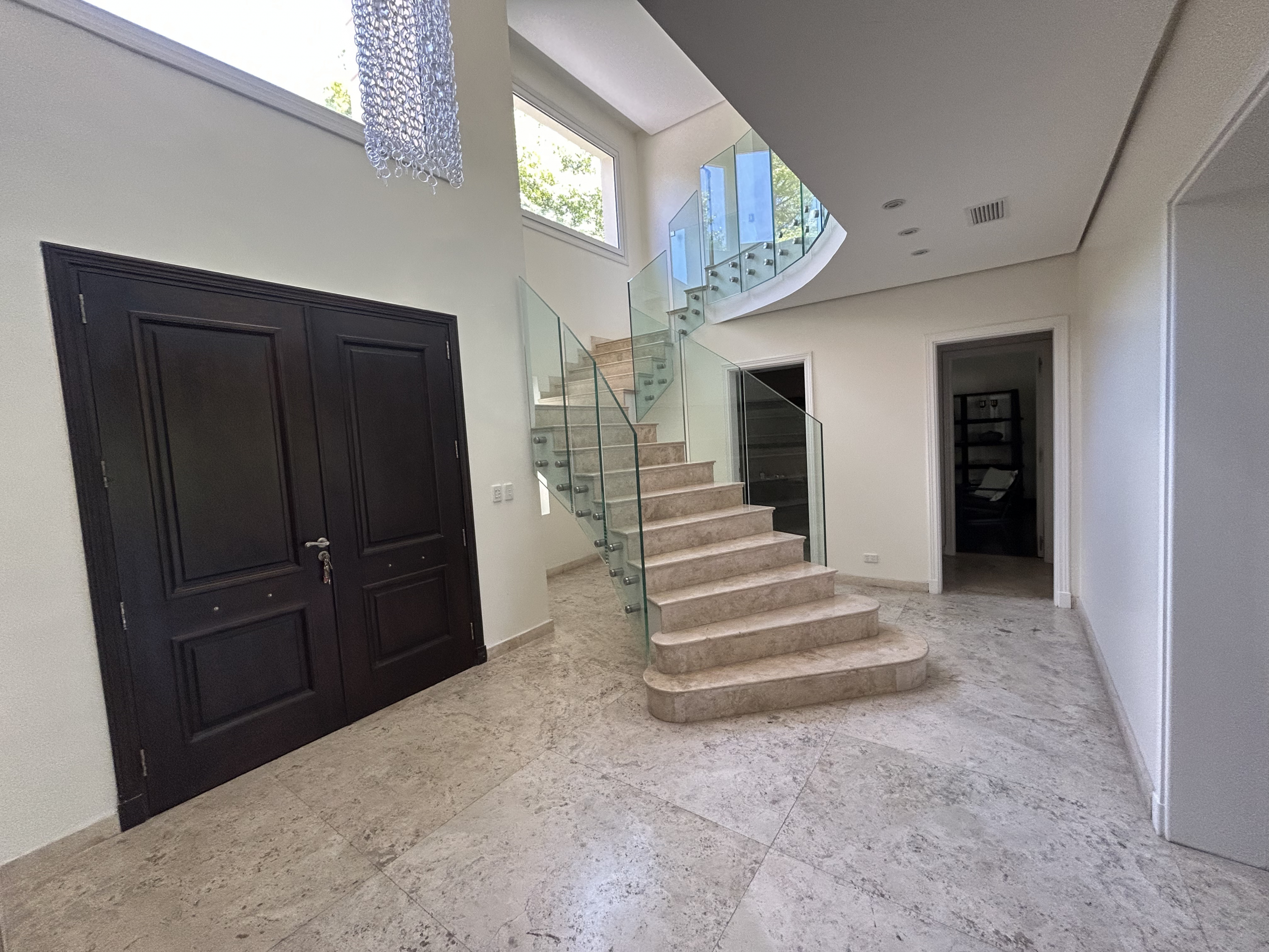 La propiedad se ubica en un privado cul de sac, desde donde se accede al aparcamiento para 2 coches cubierto, al ingresar a la casa tenemos un amplio recibidor desde donde se puede acceder al aseo, a la fantástica cocina y a su living comedor de grandes dimensiones y varios ambientes que se conectan con la galería, jardín, espectacular quincho cubierto y pileta climatizada con jacuzzi. La cocina esta completamente equipada con electrodomésticos Smeg y Samsung. Desde esta zona se accede al lavadero y 2 dormitorios con 1 baño completo que pueden ser útiles para huéspedes. El sector de family room y quincho cuenta con parrilla de acero inoxidable a leña, horno de barro y sector de parrilla a gas, un baño completo y fabulosa mesa para 14 personas, todo este sector con grandes ventanales y cortinas automatizadas de madera que conectan con el sector de la piscina de 7 x 14 mts. El jardín es maduro con riego automático y muy cuidado.