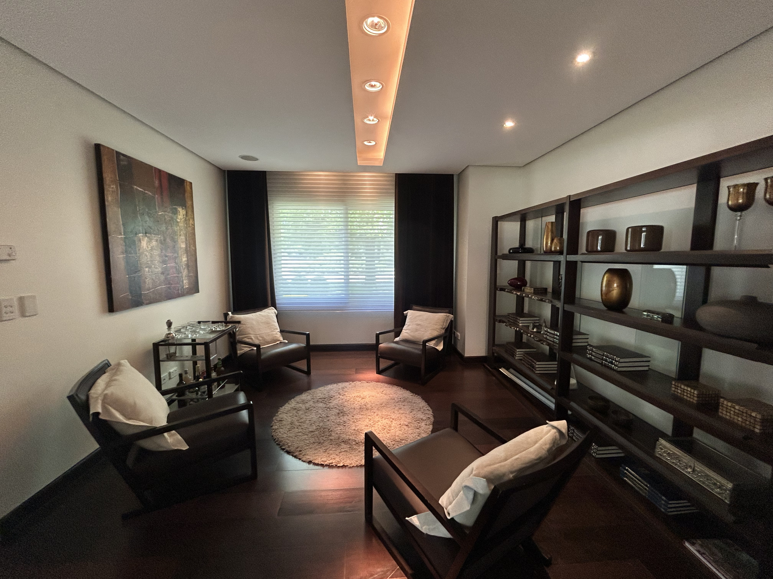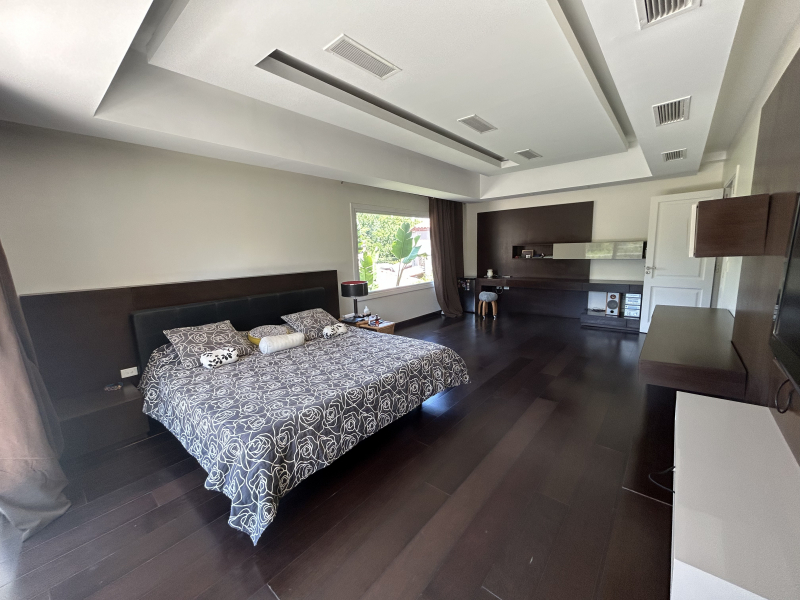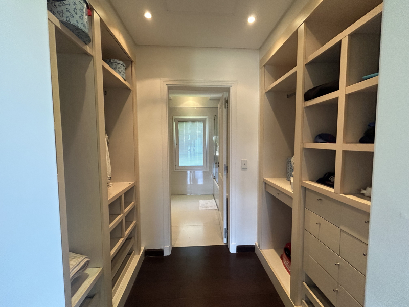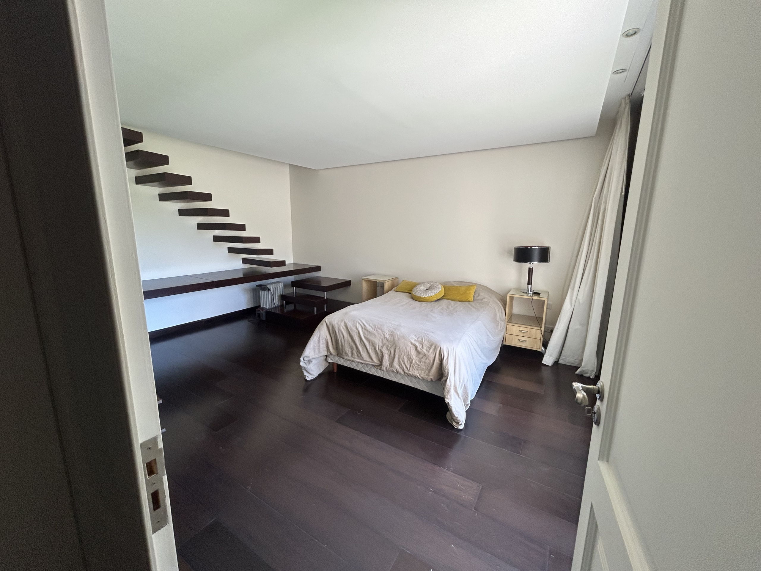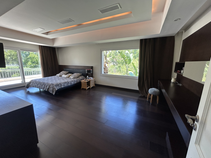 En la planta alta nos encontramos 2 habitaciones en suite, cada una con su propia terraza con vistas abiertas, luego se accede a través de una sala de lectura a dos enormes dormitorios que tienen en común un gran baño en suite y un doble vestidor de calidades excepcionales en madera. El baño posee jacuzzi, ducha escocesa, sauna seco y baño de vapor. En uno de los dormitorios se accede mediante una escalera a un gran altillo que puede ser utilizado para diversos fines.